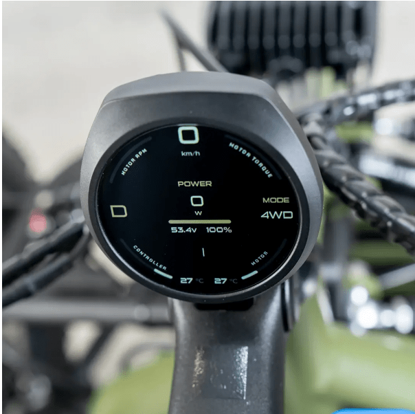Il est facile de passer du mode 2 roues motrices au mode 4 roues motrices en appuyant sur un bouton installé sur le guidon.