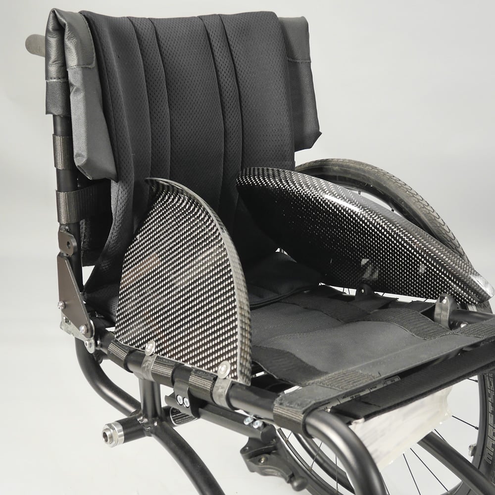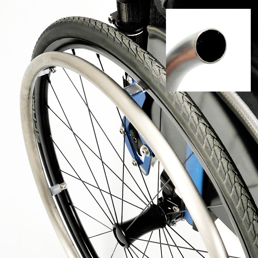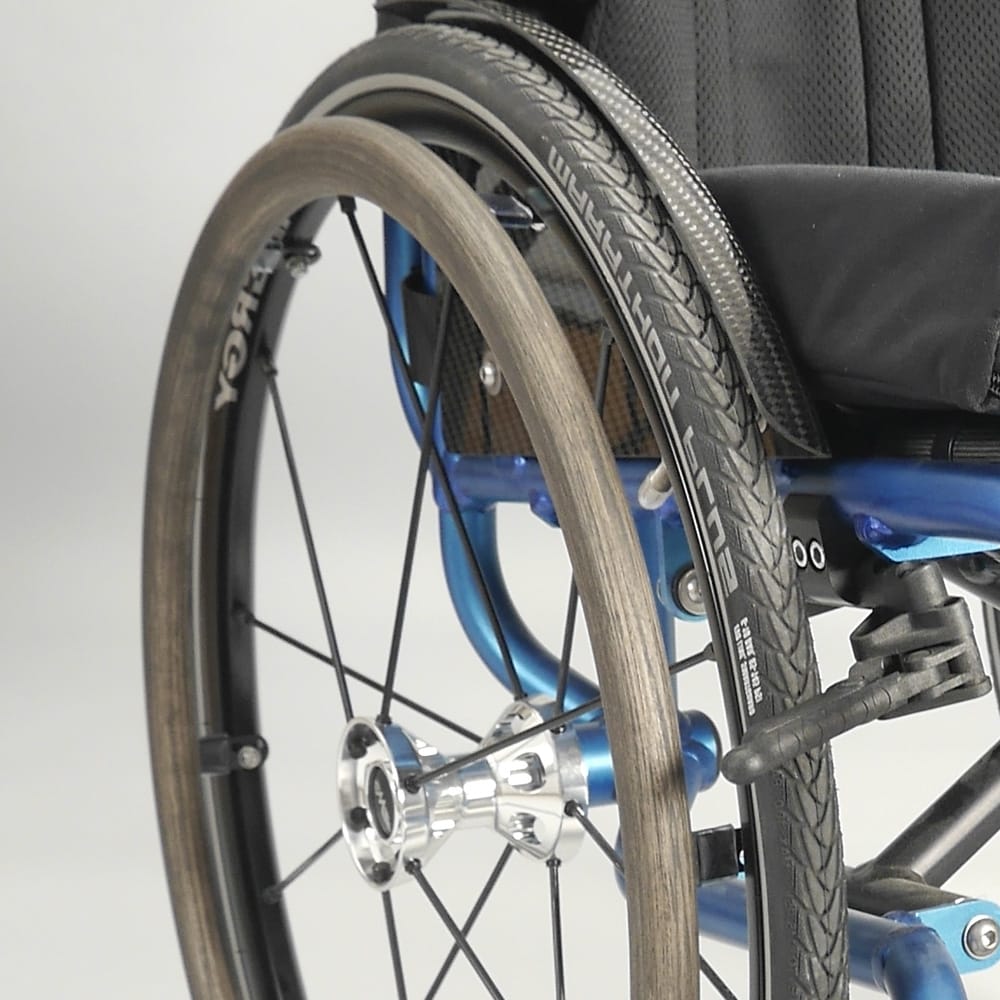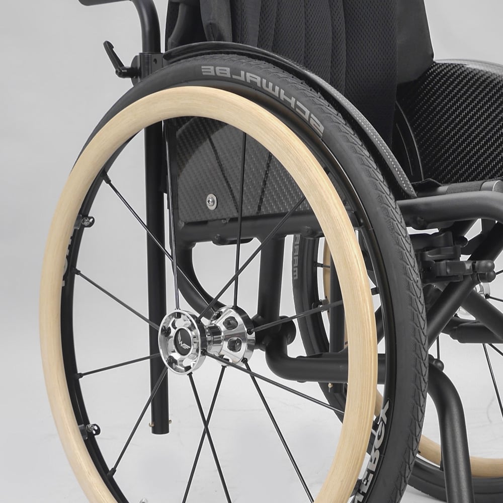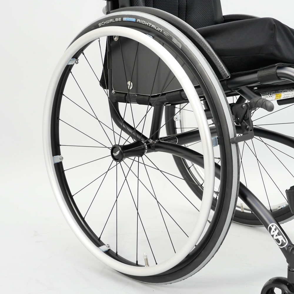 Dalton est un fauteuil roulant rigide actif avec des repose-pieds séparés et amovibles qui sont réglables en angle et en hauteur.