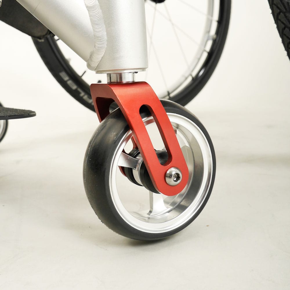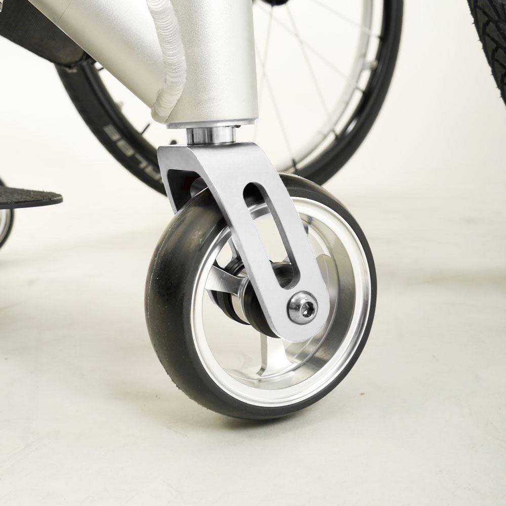 Grâce à la forme de son châssis, aux potences escamotables et au dossier pliant sur l’assise, le Dalton est facile à ranger dans une voiture.